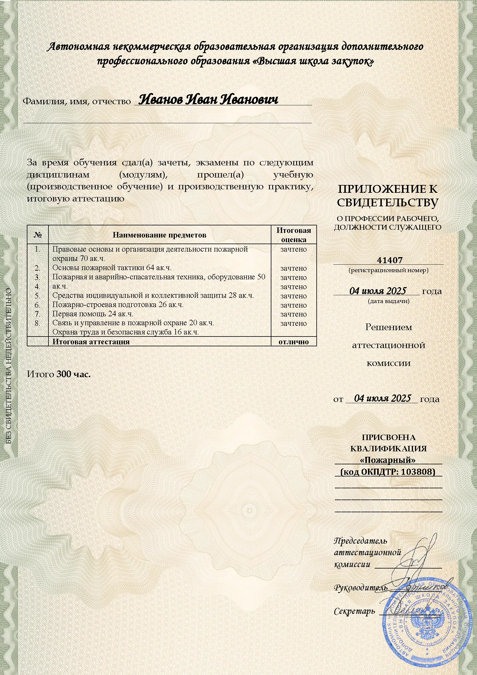 Профессиональное обучение, 300 академических часов, 8 модулей: законодательство и нормативные акты в области пожарной безопасности, тактика тушения пожаров и проведение аварийно-спасательных работ, устройство и использование пожарно-технического вооружения, оказание первой помощи. Онлайн-обучение в в Санкт-Петербурге с итоговой аттестацией.