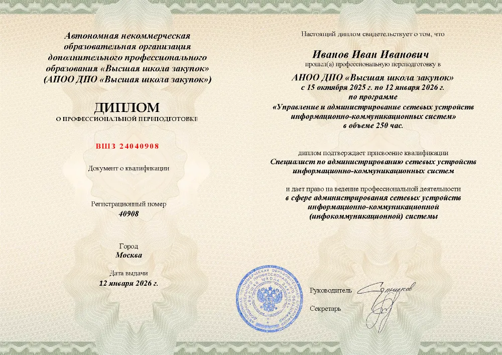 Это полноценная образовательная программа для получения дополнительной квалификации и освоения новой профессии. Для поступления также требуется высшее или среднее профессиональное образование (СПО). Итоговым документом является полноценный диплом о профессиональной переподготовке, который ценится на рынке труда. Программы являются наиболее объемными и начинаются от 250 академических часов, что обеспечивает глубокое погружение в специальность.