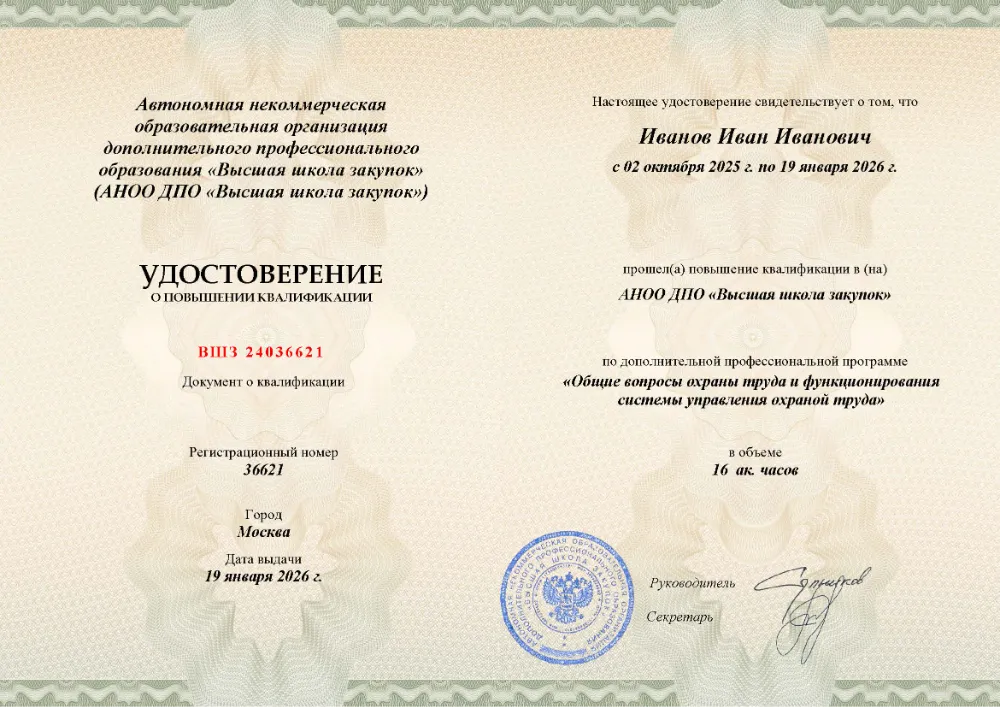 Повышение квалификации, 16 академических часов, 4 модуля: правовые основы и организация системы охраны труда, управление профессиональными рисками и оценка условий труда, обеспечение безопасных условий и социальные гарантии работникам, расследование несчастных случаев и внутренний аудит системы. Онлайн-обучение в в Санкт-Петербурге с итоговой аттестацией.