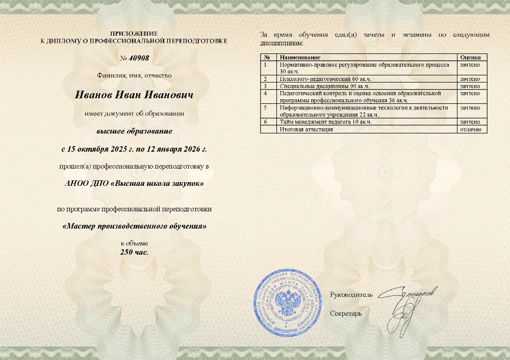 Это полноценная образовательная программа для получения дополнительной квалификации и освоения новой профессии. Для поступления также требуется высшее или среднее профессиональное образование (СПО). Итоговым документом является полноценный диплом о профессиональной переподготовке, который ценится на рынке труда. Программы являются наиболее объемными и начинаются от 250 академических часов, что обеспечивает глубокое погружение в специальность.